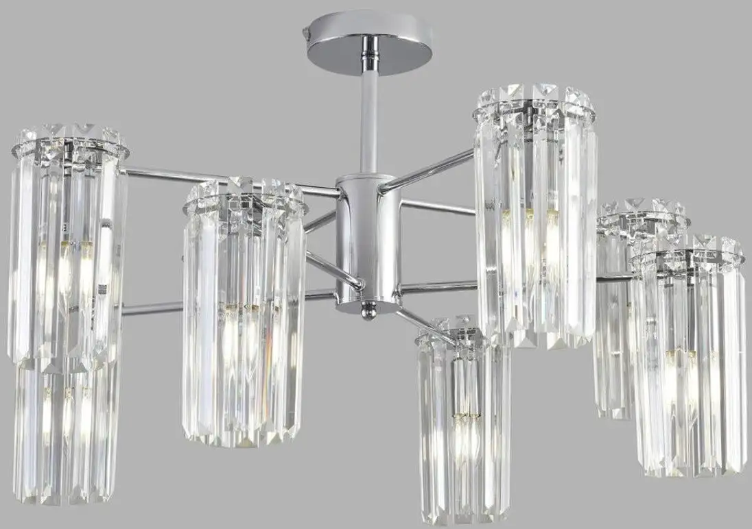 Подвесная люстра Lumion Favla 8348/8C имеет классический дизайн и отлично подойдет для любой комнаты. Она оснащена восемью лампами мощностью по 40 Вт каждая, которые обеспечивают яркое освещение. Каркас выполнен из металла серебристого цвета, а плафоны сделаны из прозрачного стекла, что создает элегантный внешний вид. Размеры люстры — 70 см в длину, ширину и высоту, что делает её подходящей для многих помещений. Люстра крепится на планку и проста в установке. Она не поддерживает регулировку яркости или цвета свечения, но ярко освещает пространство вследствие мощных ламп. Поскольку лампочки в комплекте не идут, их необходимо приобретать отдельно. Люстра не подключается к системам "умный дом" и не имеет встроенных светодиодов или датчиков движения. Эта модель отлично подходит для тех, кто ценит аккуратность и классический стиль.