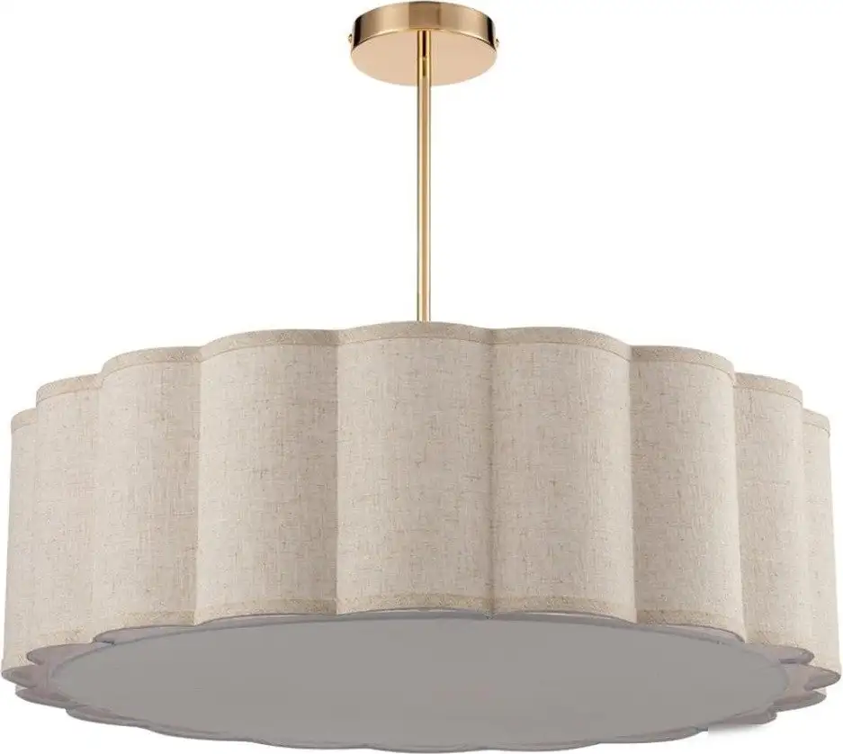подвесная люстра, плафон бежевый (текстиль/стекло), каркас золотистый