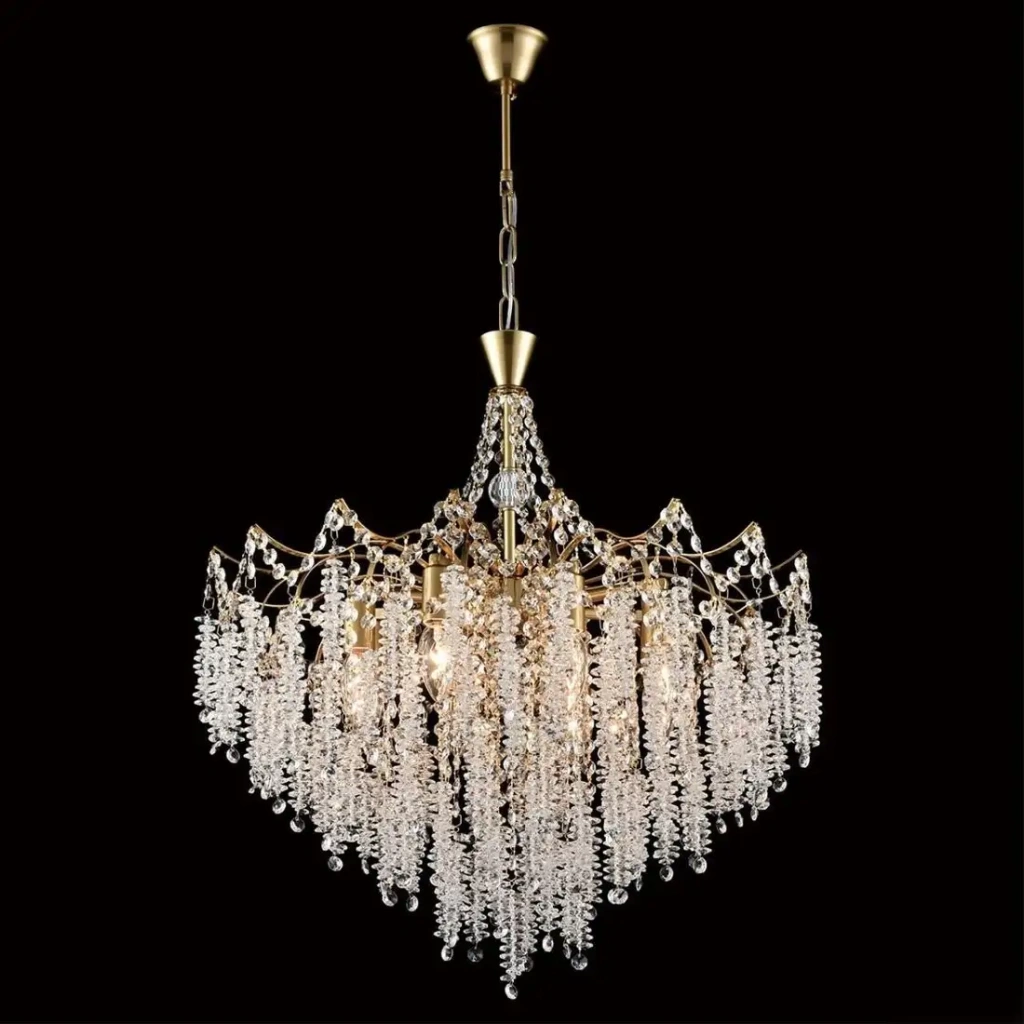 - Прозрачные хрустальные плафоны — добавляют изящества и позволяют свету красиво рассеиваться.