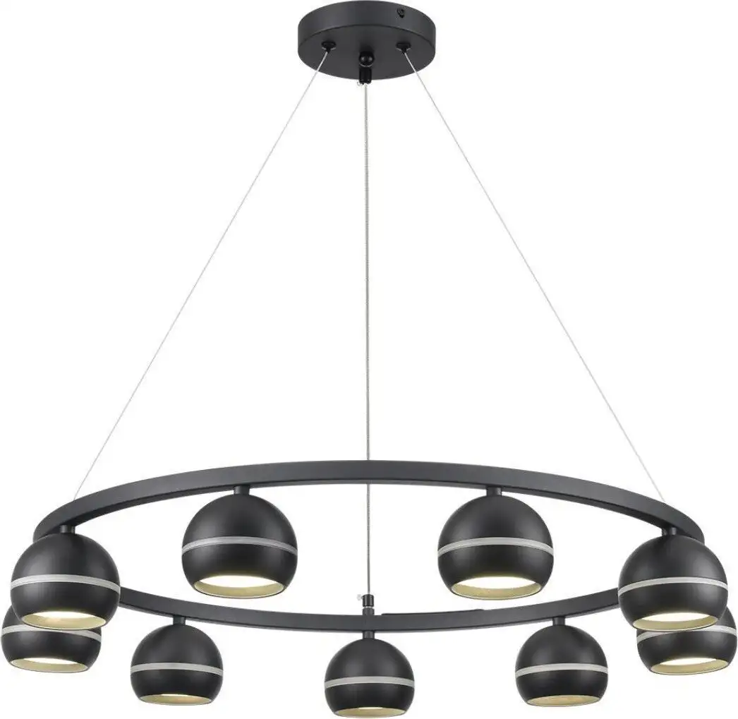 Подвесная люстра Lumion Luazana 8242/9 предназначена для монтажных работ в промышленных и офисных помещениях. Она оснащена девятью лампочками с цоколем GX53 мощностью 7 Вт каждая, обеспечивая яркое освещение. Каркас и плафоны выполнены из прочного металла черного цвета, что придает ей современный внешний вид. Люстра крепится на планку и имеет ширину 67 см и высоту 70 см. В комплект входит монтажный набор для быстрой установки. Эта модель не имеет встроенных светодиодов, регулировки яркости или дистанционного управления. Провода и компоненты обеспечивают надежное подключение к электросети. Она не предназначена для детской комнаты или умных систем, однако отлично подходит для освещения офисных и промышленных пространств. Люстра простая в использовании и долговечная, хорошо подходит для постоянной работы.