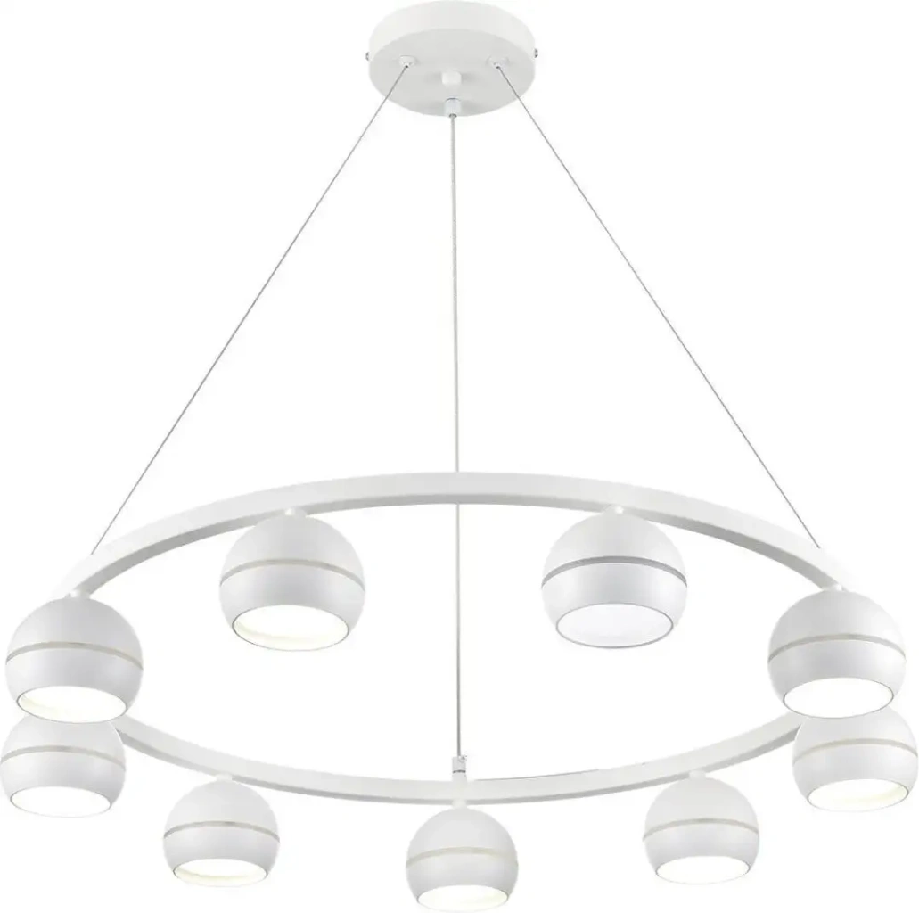 Эта подвесная люстра Lumion Luazana 8254/9 подходит для освещения промышленного или офисного пространства. Она оснащена девятью лампами мощностью 7 Вт каждая, которые обеспечивают яркое освещение. Каркас и плафоны выполнены из белого металла, что создает современный и чистый вид. Люстра подключается к сети и крепится на потолочную планку, она не имеет встроенных диодов, дистанционного управления или регулировки яркости. Назначение — обеспечить надежное освещение больших помещений с простотой монтажа. Вес устройства составляет 5 кг, а ширина — 67 см, что делает его подходящим для высоких потолков. В комплект входит монтажный набор, и установка занимает немного времени. Конструкция не предусматривает регулируемых функций, но обеспечивает стабильную работу и долговечность. Эта модель отлично подходит для офисных залов, производственных цехов и других коммерческих помещений. А отсутствие сложных настроек позволяет быстро подготовить её к работе.