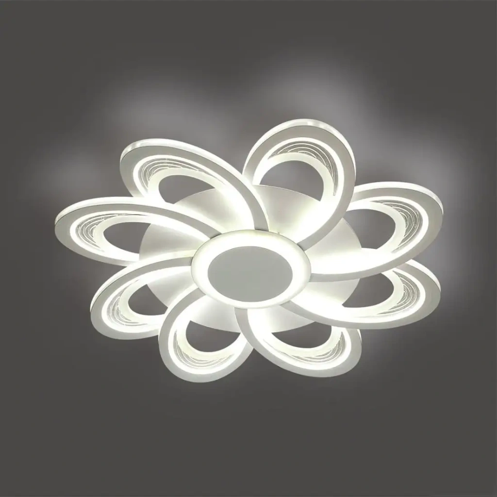 Припотолочная люстра Lumion Manila 8198/95L отлично подойдет для освещения любой комнаты. Она имеет восемь встроенных светодиодных ламп мощностью 95 Вт, которые обеспечивают яркий свет с цветовой температурой от 3000 до 6000 K. Люстра выполнена в белом цвете с каркасом из металла и плафонами, также белого цвета. Вы можете управлять освещением с помощью дистанционного пульта, который идет в комплекте. Регулируйте яркость, цвет свечения и температуру светового потока на свое усмотрение. Общая длина и ширина составляют 50 см, высота — всего 6 см, что позволяет легко установить её в разных помещениях. Вес устройства — 2,36 кг, монтаж происходит на планку. Люстра дает световой поток 5552 лм и подходит для создания комфортной атмосферы. Это устройство не является влагозащищенным и не имеет поворотных ламп или датчиков движения.