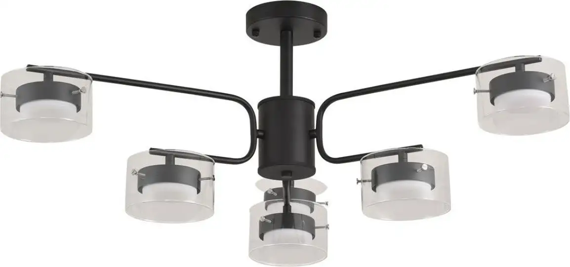 Припотолочная люстра Lumion Natalina 8349/6C отлично подходит для освещения комнаты. Она содержит 6 ламп с цоколем GX53 мощностью 7 Вт каждая. Плафоны выполнены из прозрачного стекла, а каркас сделан из прочного металла в черном цвете. Люстра подключается к электросети и закрепляется на потолке при помощи планки. Встроенных светодиодов нет, потому свет исходит именно от ламп. Выключатель позволяет легко управлять освещением. Конструкция не поддерживает регулировку яркости, цвета или температуры свечения. Она не оснащена функциями удаленного управления или интеграцией в "умный дом". Эта модель прочная, современного дизайна и подходит для общего освещения комнаты.