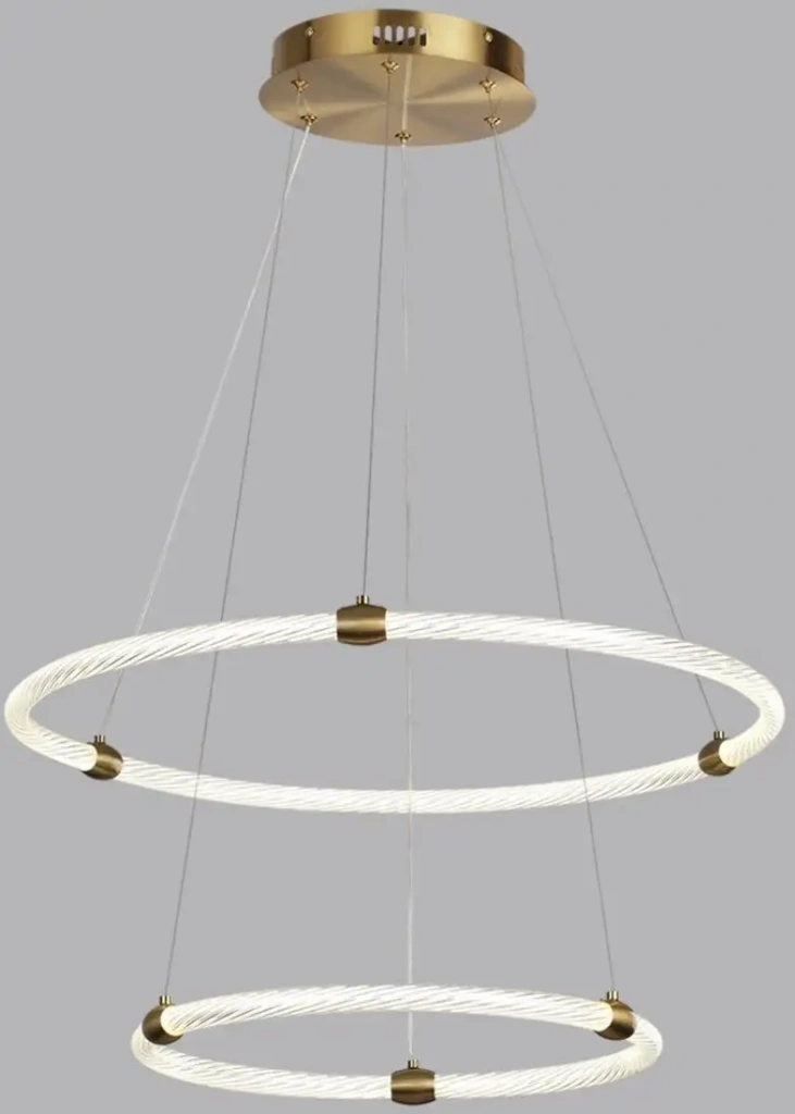 Подвесная люстра Lumion Twinkle 8010/50L создаёт мягкий и яркий свет благодаря встроенным светодиодам мощностью 50 Вт. Она оснащена двумя плафонами перламутрового цвета на золотистом каркасе, что делает её стильной и современной. Люстра легко крепится к потолку и длиной 60 см отлично подходит для гостиных или спальнь. Вес устройства составляет 1,66 кг, а его яркость достигает 4600 люмен. Плафоны выполнены из акрила, а каркас — из металла, что обеспечивает прочность и долговечность. Светильник не имеет вращающихся ламп и датчика движения, что упрощает его использование. Он подключается непосредственно к электросети, что делает установку простой и быстрой. Люстра отличается надёжностью и современным дизайном, подходящим для различных интерьеров. Благодаря компактному размеру, она легко вписывается в помещение и хорошо освещает комнату.