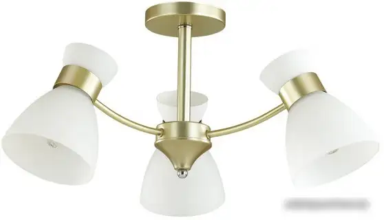 люстра средней высоты, плафон белый (стекло), каркас золотистый