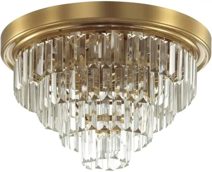 припотолочная люстра, плафон прозрачный (хрусталь), каркас бронзовый
