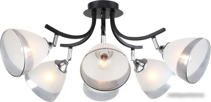 люстра средней высоты, плафон белый/прозрачный (стекло), каркас черный