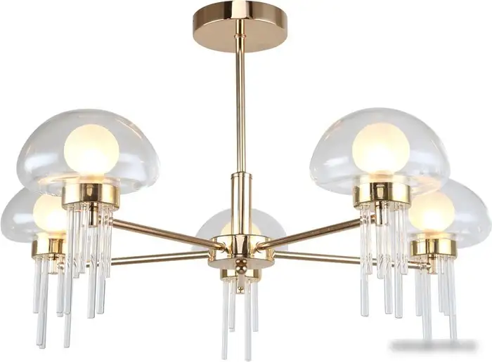 люстра средней высоты, плафон прозрачный (стекло), каркас золотистый