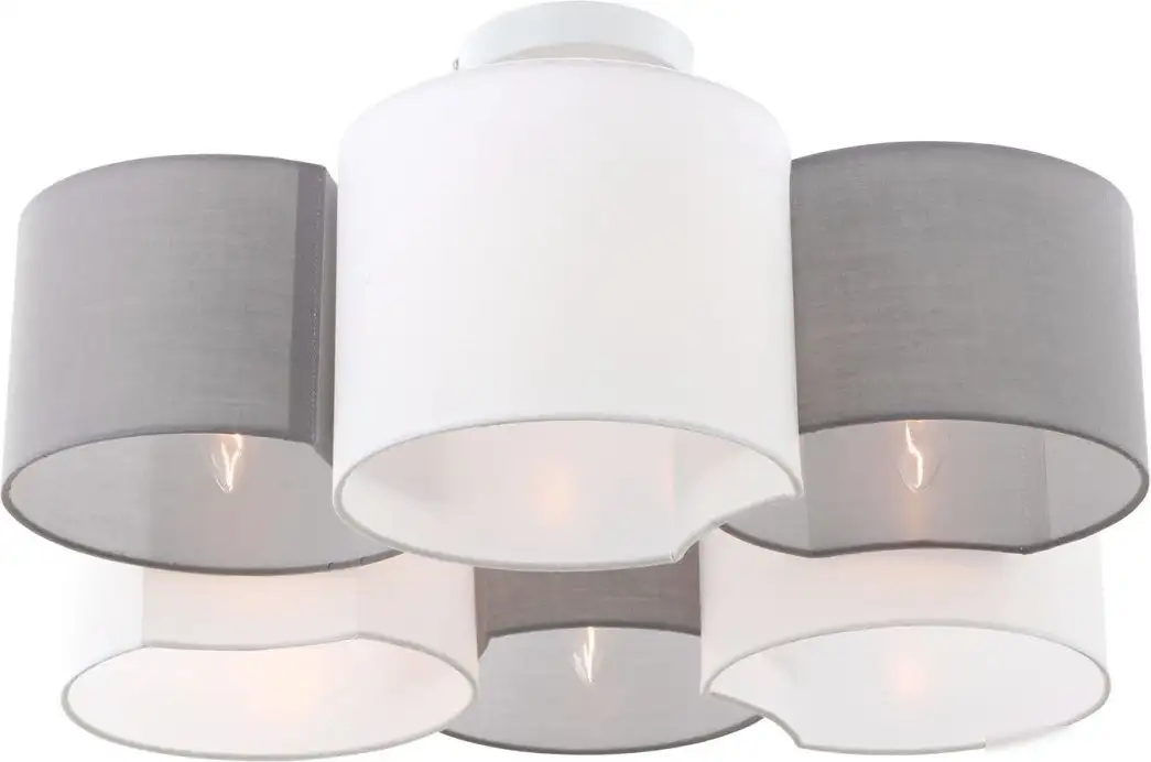 люстра средней высоты, плафон белый/серый (текстиль), каркас белый