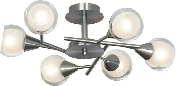 Люстра Lussole LGO LSP-0141 — это классическая потолочная модель с шестью лампами мощностью по 40 Вт каждый. Она имеет стильный серебристый каркас и прозрачные плафоны из стекла, создающие мягкий и приятный свет в комнате. Люстра не оснащена пультом и регулировкой яркости, поэтому работает с обычными лампами типа накаливания. Размер светильника — 60 см по длине и ширине, что подходит для большинства комнат. Крепится она на планку, легко монтируется и устойчива. Эта модель подходит для гостиной или спальни, добавляя в интерьер классическую нотку. Материалы — металл и стекло — делают люстру прочной и долговечной. Простая в использовании и уходе, она создает уют и гармонию в комнате.