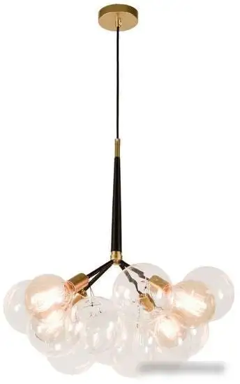 подвесная люстра, плафон золотистый/прозрачный, каркас черный