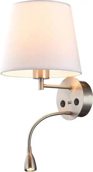 бра, плафон белый/серый (текстиль), каркас белый