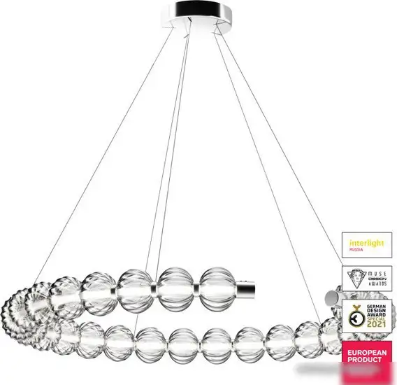 Подвесная люстра Maytoni Amulet MOD555PL-L30CH4K создает мягкое и комфортное освещение с помощью светодиодной ленты, которая обеспечивает равномерный свет при температуре 4000 К, близкой к дневному. Она имеет современный дизайн, сочетающий этнические мотивы и элементы, выполненные из стекла и металла, что делает интерьер более стильным и уютным. Люстра легко устанавливается и регулируется по высоте благодаря тросам, что помогает выбрать оптимальный уровень освещения. Ее ширина составляет 88,5 см, а вес — 7,32 кг, что обеспечивает устойчивость и безопасность. Благодаря яркости 850 лм и мощности 30 Вт эта модель отлично подходит для различных помещений. Каркас выполнен из хрома, а плафоны — из прозрачного стекла, что создает эффект легкости. Отличительной особенностью является использование качественных материалов, которые продлевают срок службы устройства. Люстра обеспечивает хорошее освещение и гармонично вписывается в современный интерьер.