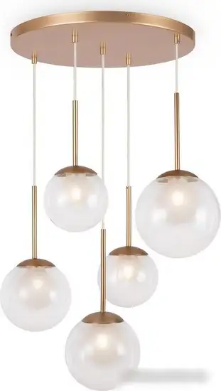 | Информация | Материал арматуры - металл, цвет - золото, белый, черный. Округлые плафоны из матового белого стекла. Универсальные формы, минималистичный дизайн. Цоколь - E14. Лампы не входят в комплект. Регулируемая высота подвесных светильников. |