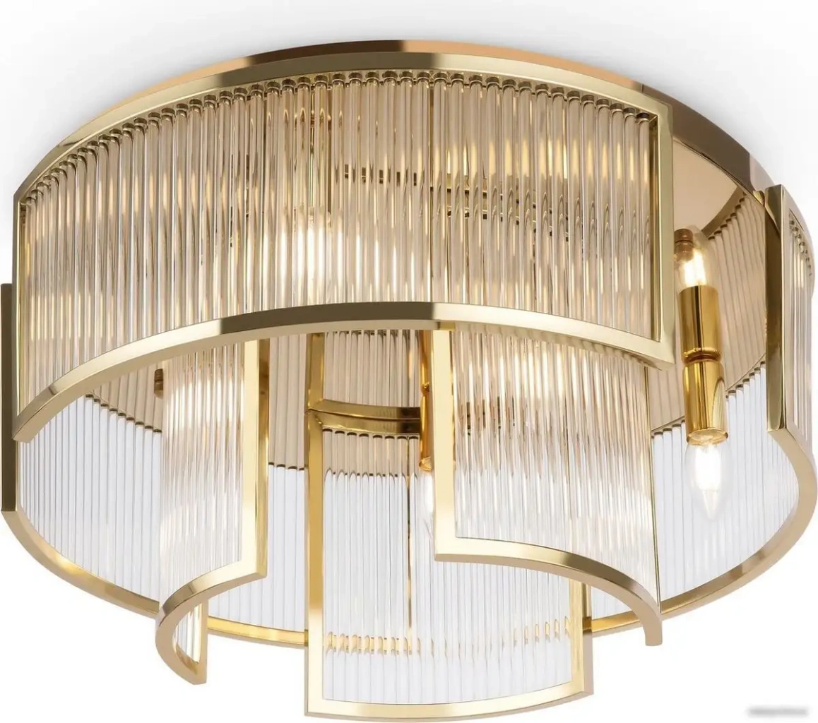 припотолочная люстра, плафон прозрачный (стекло), каркас золотистый