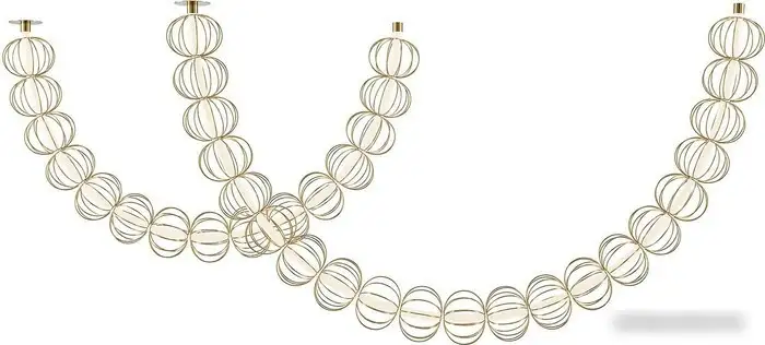 | Информация | Арматура - металл, цвет - золото. Декоративные проволочные плафоны-сферы - ручная работа. Горизонтальные подвесы в двух вариантах монтажа - накладном и скрытом.Световой элемент - силиконовая трубка с LED-источником. Цветовая температура3000К. |
