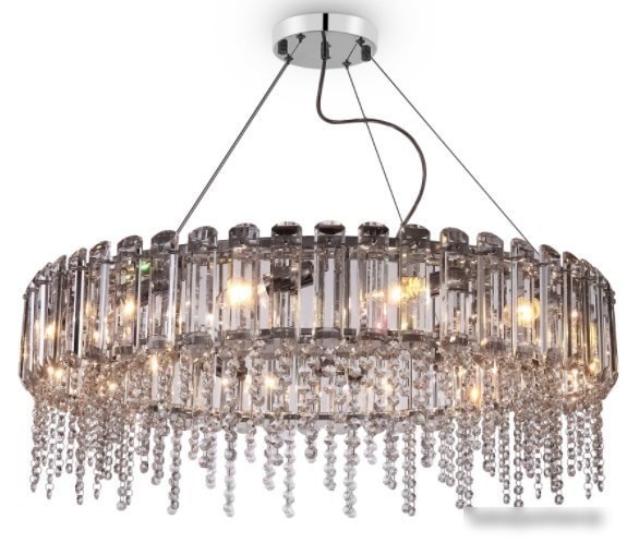 подвесная люстра, плафон прозрачный (хрусталь), каркас хром
