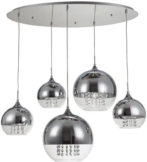 люстра, 5×60 Вт, плафон никель/прозрачный, каркас никель