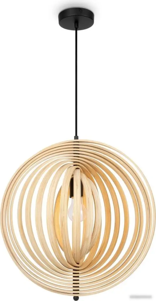 люстра средней высоты, плафон бежевый (дерево), каркас черный