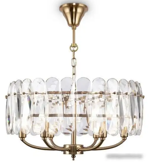 подвесная люстра, плафон прозрачный (стекло), каркас латунь