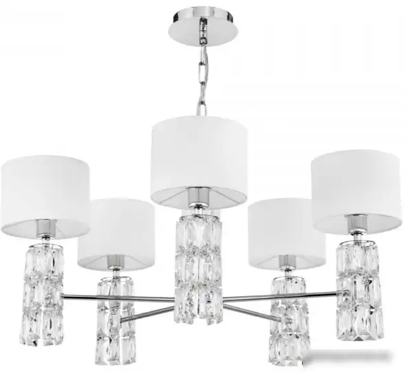 Подвесная люстра Maytoni Talento DIA008PL-05CH станет ярким акцентом в любой комнате. Она оснащена пятью лампами мощностью по 40 Вт каждая, что обеспечивает хорошее освещение. Каркас выполнен из хрома, а плафоны из белого текстиля — создают мягкий и приятный свет. Люстра имеет фиксированную высоту 80,2 см и длину 70 см, что подходит для большинства помещений. Крепится она на планку, легко монтируется на потолок. Управление нет, свет регулируется только включением. Конструкция надежна и проста в использовании. Эта модель подходит для современных интерьеров и легко сочетается с различными стилями.