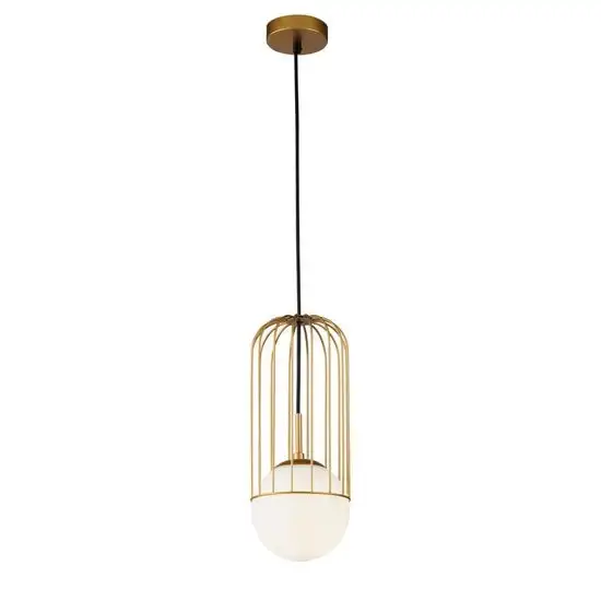 подвесная люстра, 1×40 Вт, плафон белый, каркас золотистый