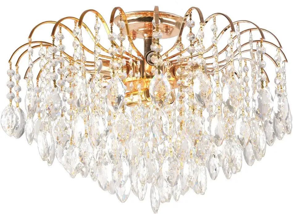 припотолочная люстра, плафон прозрачный (хрусталь), каркас золотистый