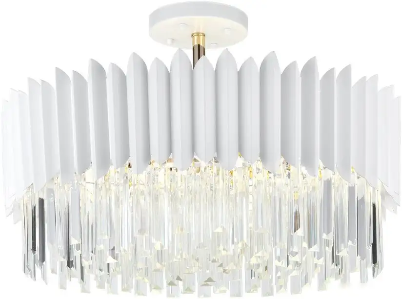 люстра средней высоты, плафон белый, каркас прозрачный/белый