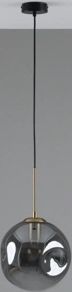 подвесная люстра, плафон дымчатый (стекло), каркас черный/золотистый