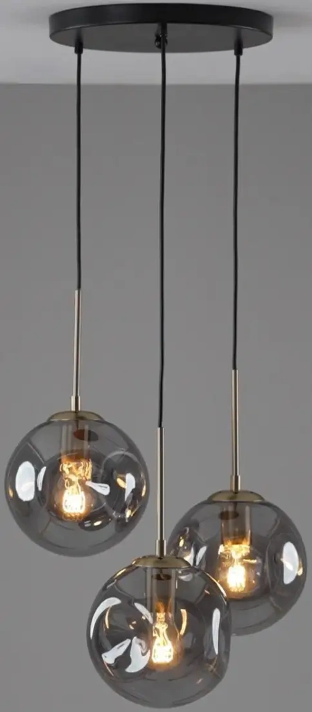 подвесная люстра, плафон дымчатый (стекло), каркас черный/золотистый