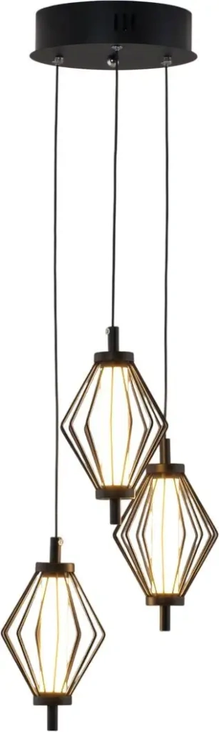 Подвесная люстра Moderli Eloise V11353-PL создаёт уютный свет в любой комнате. Она имеет три светодиодные лампы мощностью 15 Вт каждая, которые обеспечивают яркое освещение — 1068 люмен. Люстра легко подключается к сети и не требует дистанционного управления или настройки цветовой температуры. Её чёрные плафоны и каркас из металла выглядят современно и подходят к разным интерьерам. Высота люстры составляет 120 см, что удобно для потолков среднего уровня. Благодаря влагозащищённости, её можно использовать в различных помещениях. Управлять освещением помогает встроенная светодиодная подсветка, которая не требует замены ламп и долго служит. Комплектация включает все необходимые лампы, что позволяет сразу установить изделие. Эта люстра отлично подходит для тех, кто ищет стильное и надёжное освещение без лишних функций.