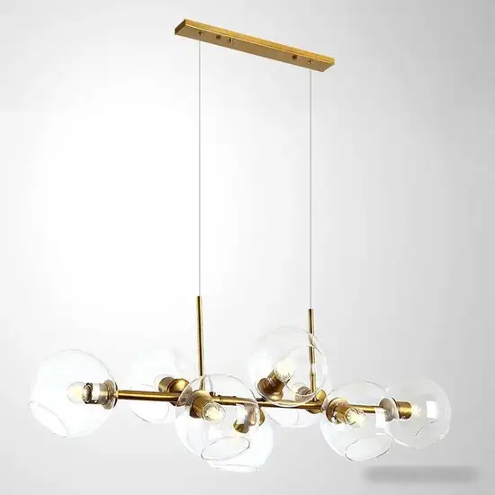 Подвесная люстра Moderli Long V2170-P идеально подходит для гостиной в стиле модерн. Она освещает помещение до 16 кв. м и имеет восемь лампочек с цоколем E27 и мощностью 60 Вт каждая. Люстра выполнена из стекла и металла, что делает её надежной и легкой в установке. Цвет каркаса — золотистый, а плафоны прозрачные в виде шаров, создавая яркий и современный дизайн. Она устанавливается на потолок с помощью планки, длиной 110 см и высотой 100 см. Время от времени стоит учитывать её вес — 2,5 кг, чтобы правильно закрепить. Благодаря прозрачным плафонам, свет равномерно распространяется по комнате, создавая уют. Люстра идеально подходит для натяжных потолков. Ее цена со скидкой — 33990 рублей, что делает покупку выгодной.