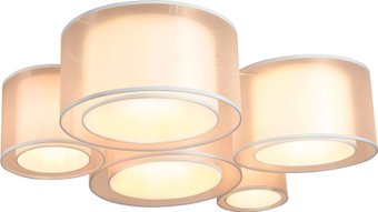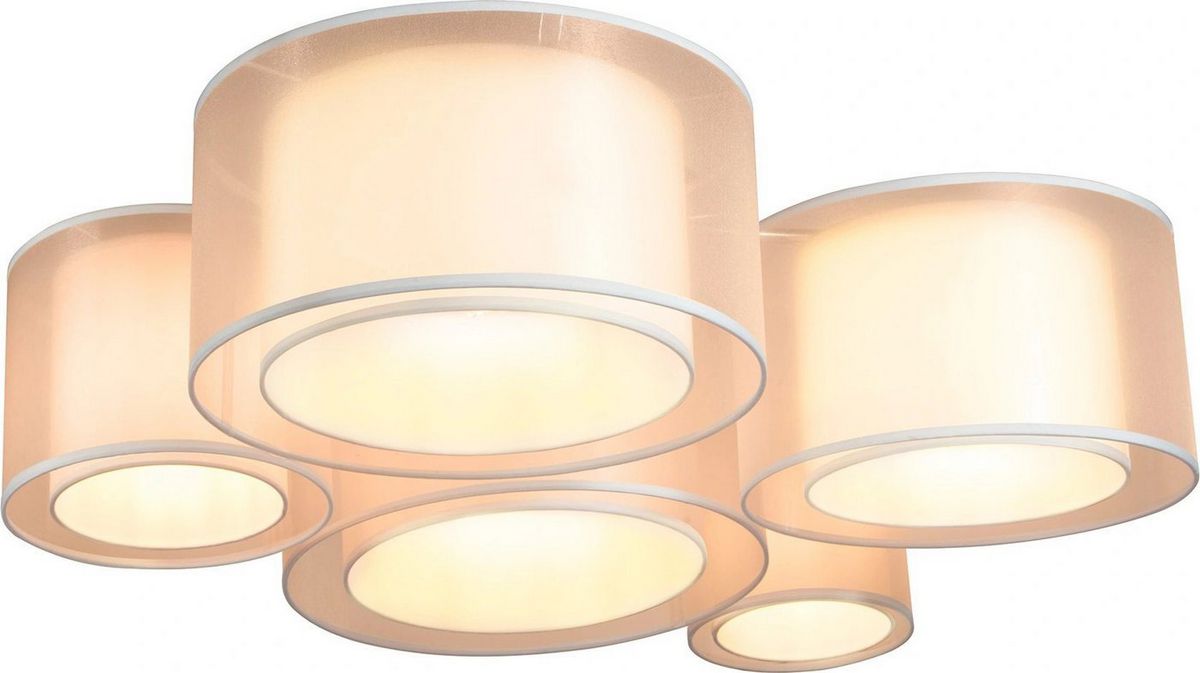 Люстра Moderli Massa V11398-5C — это современное потолочное освещение, созданное для комфорта и стиля. Она оснащена пятью лампами с цоколем E27 и мощностью до 300 Вт, что обеспечивает хорошую освещенность помещения до 20 м². Плафоны из белого текстиля мягко рассеивают свет, создавая уютную атмосферу, а металлический корпус с хромированным покрытием добавляет элегантности интерьеру. Люстра легко устанавливается на любой потолок благодаря планке и подходит для стандартных и натяжных потолков. Стильный дизайн и качественные материалы делают этот светильник подходящим для дома, кафе или ресторанов. Модель обладает степенью защиты IP20, что гарантирует безопасность при использовании в помещениях с нормальной влажностью. Это надежное решение, которое легко комбинируется с разными стилями интерьера и просто управляется. Ее компактные размеры – длина 72 см, ширина 90 см и высота 25 см — позволяют удобно разместить светильник в любом помещении.