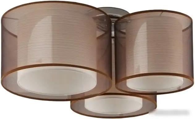 люстра средней высоты, плафон коричневый (текстиль), каркас серебристый