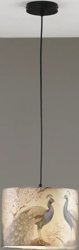 Подвесная люстра Moderli Strauss V11514-1P станет ярким акцентом в вашем интерьере. Она выполнена в современном стиле с черным металлическим каркасом и светлым абажуром из ткани с уникальным принтом павлинов на ветвях сакуры. Благодаря регулируемой цепи длиной от 20 до 97 см, вы легко настроите нужную высоту освещения. Светильник поддерживает три лампы с цоколем E27 и общей мощностью до 60 Вт, что обеспечивает яркое освещение для площади до 2 квадратных метров. Легкая установка благодаря монтажному комплекту делает её удобной в монтаже. Теплый мягкий свет создаст уют в гостиной, спальне или кухне. Металлический корпус окрашен в черный цвет, он гармонично сочетается с тканевым плафоном и придает люстре стильный вид. Управление осуществляется через обычный настенный выключатель, что делает использование очень простым. Этот светильник отлично подходит для натяжных потолков и современного интерьера, добавляя оригинальности и уюта вашему пространству.
