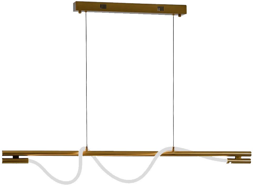 Подвесная люстра Moderli True V10679-PL — современное и стильное решение для вашего интерьера. Она состоит из светодиодной ленты мощностью 15 Вт, которая равномерно рассеивает свет с помощью гибкой силиконовой оболочки. Светильник имеет металлический каркас золотого цвета, создавая элегантный образ. Благодаря длине 120 см, эта люстра освещает площадь до 12 м², делая комнату яркой и уютной. Лампа встроена и мощностью 15 Вт, она обеспечивает яркий свет и энергоэффективность. Светильник легко монтируется на потолок и отлично подходит для современных интерьеров. Он обладает невысоким весом — всего 2,3 кг, что облегчает установку. В комплект входит одна светодиодная лампа с яркостью 1440 люмен. Благодаря современному дизайну и качественным материалам, он станет привлекательным акцентом в комнате.