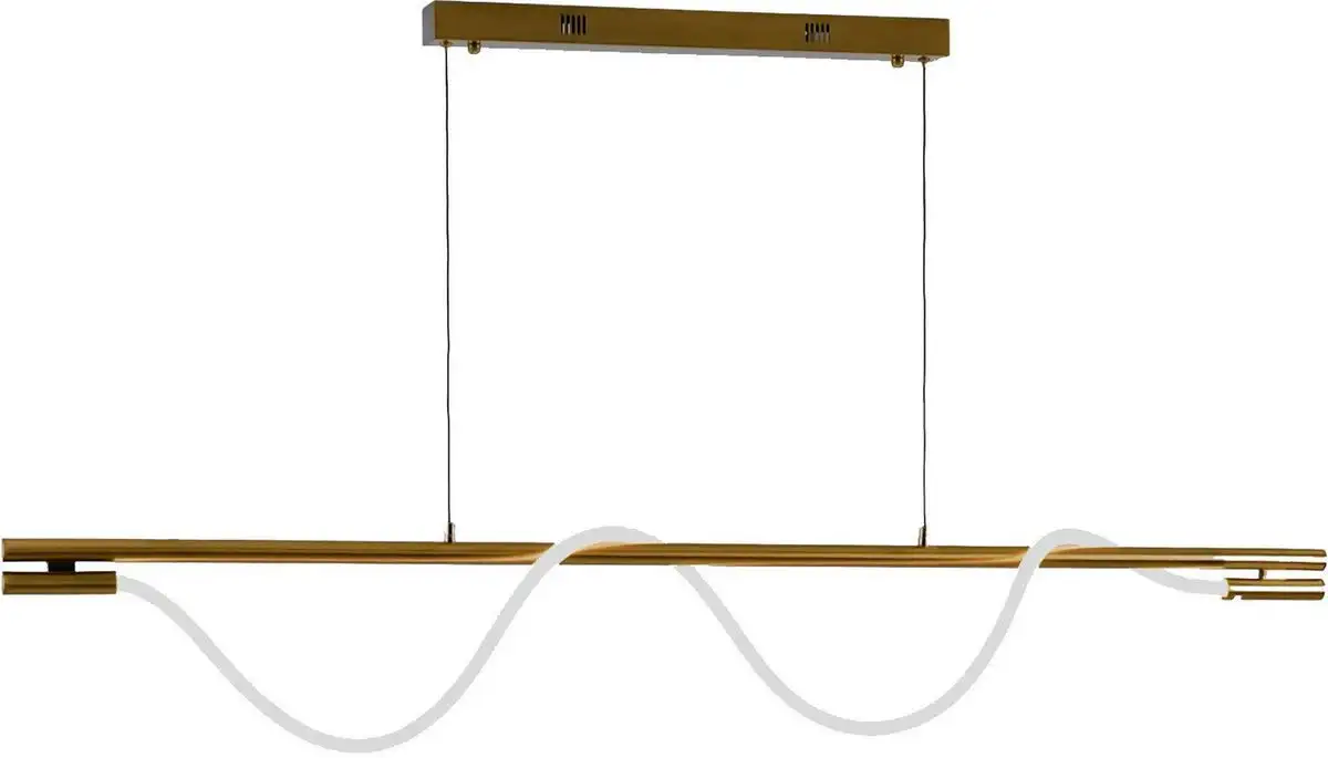 Подвесная люстра Moderli True V10680-PL выполнена в современном стиле. Она состоит из металлического золотого каркаса и светодиодной ленты мощностью 18 Вт. Лента оборачиваться вокруг корпуса, создавая мягкое и равномерное освещение. Встроенные светодиоды обеспечивают яркость 1740 люмен и плавное освещение. Светильник длиной 150 см хорошо подходит для освещения пространства до 15 м². Он легко вписывается в современный интерьер и легко монтируется благодаря планке крепления. Благодаря силиконовой оболочке светодиодной ленты, свет распространяется мягко и равномерно. Люстра оснащена светодиодной подсветкой и не вращается. Вес изделия — 2,7 кг, что облегчает установку и перемещение.