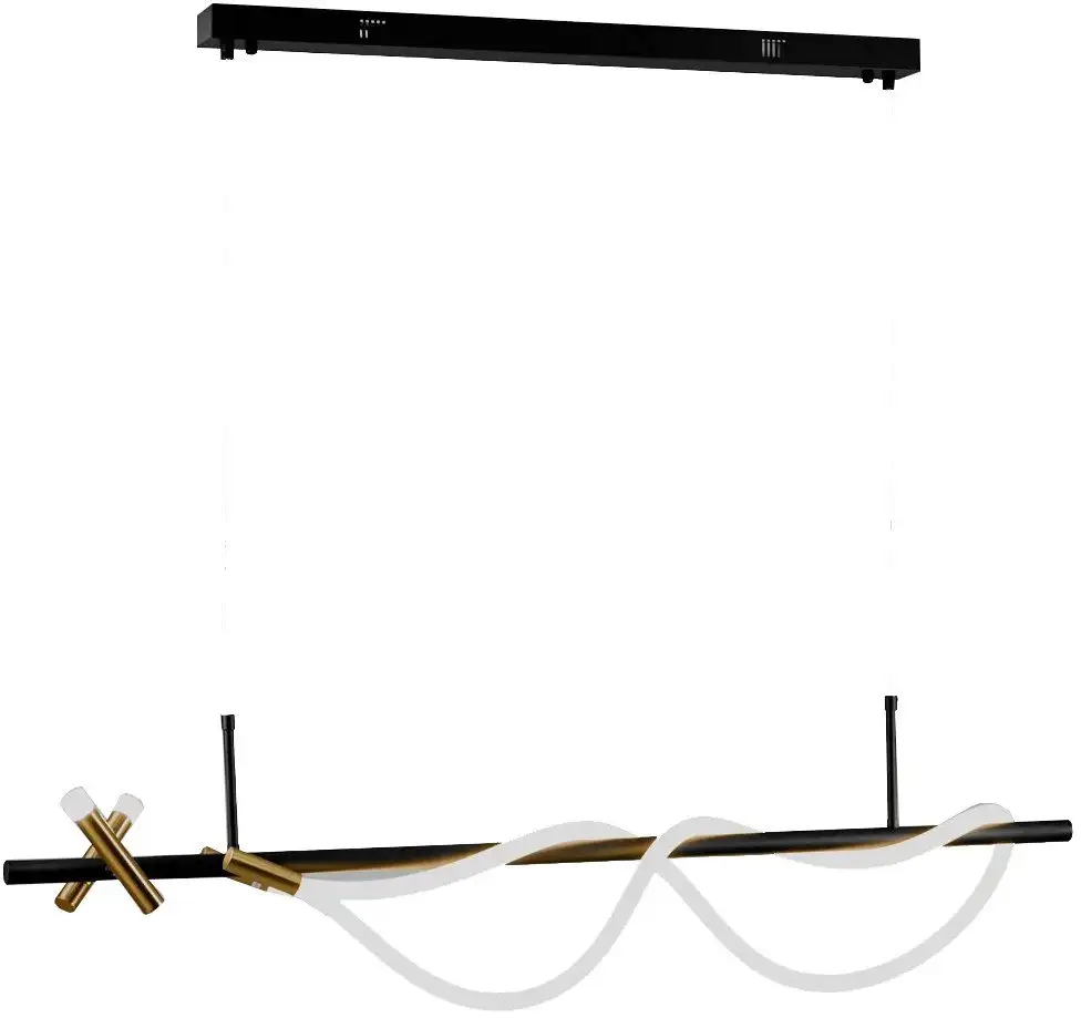 Подвесная люстра Moderli True V10685-PL создаёт современный и лаконичный интерьер благодаря своему дизайну и черному металлическому каркасу. Она состоит из трёх светодиодных ламп мощностью по 30 Вт каждая, что обеспечивает яркое и равномерное освещение площади до 12 м². Гибкая силиконовая оболочка светодиодной ленты помогает равномерно рассеивать свет, создавая приятную атмосферу в комнате. Люстра имеет длину 120 см и легко вписывается в современный дизайн. Монтаж осуществляется на потолке при помощи планки, а вес — 3,4 кг, что упрощает установку. Светильник не регулирует яркость, но обладает светодиодной подсветкой, которая дополнительно украшает интерьер. Каждый плафон выполнен из белого пластика, а корпус — из прочного металла. Простая конструкция и современные функции делают эту люстру удобной и практичной. Она отлично подходит для тех, кто ценит стиль и качественное освещение.