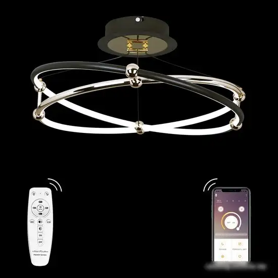 подвесная люстра, плафон золотистый/черный (пластик), каркас золотистый/черный
