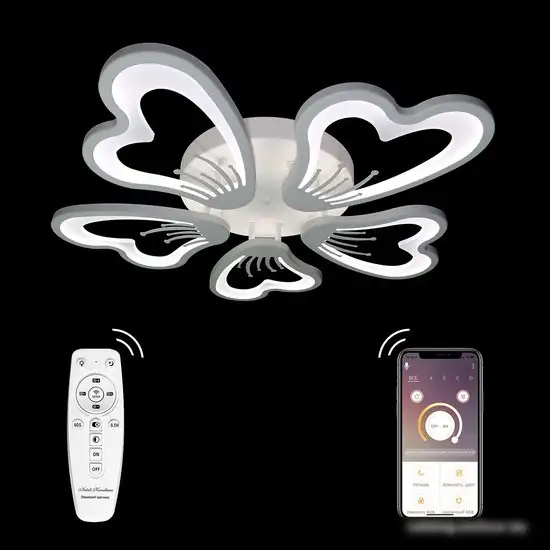 Припотолочная люстра Natali Kovaltseva Innovation Style 83030 отлично подходит для современного интерьера. Она крепится к потолку и имеет длину и ширину по 60 см, а высота всего 8 см. Люстра оснащена встроенными светодиодами, которые обеспечивают яркость 9900 люмен и регулируемую цветовую температуру от 2700 до 7000 K. Благодаря возможности регулировать яркость и цвет, вы создадите уютную атмосферу в любой комнате. Управление осуществляется с помощью смартфона или пульта, входящего в комплект, что делает использование очень удобным. В конструкции использованы прочные материалы — металл и акрил, что обеспечивает долговечность. Встроенный режим ночника и таймер помогают создавать комфортные условия и экономить энергию. Люстра не имеет поворотных элементов и датчиков движения, она проста в монтажных работах и отлично вписывается в современный дизайн.