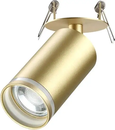 Точечный светильник Novotech Ular имеет современный дизайн с золотистым и матовым покрытием. Он устанавливается в потолок и удерживает одну лампу мощностью 9 Вт с цоколем GU10. Светильник выполнен из металла и акрила, что обеспечивает прочность и долговечность. Благодаря поворотным лампам, вы можете направлять свет в нужное место. Его компактные размеры — 6х6 см — позволяют легко монтировать в потолок. Вес всего 0,2 кг делает установку быстрой и удобной. Светильник не имеет встроенного выключателя, управления и датчиков, но отлично подходит для современного интерьера. Он не обладает влагозащитой, поэтому рекомендуем устанавливать его в сухих помещениях. Простая конструкция позволяет легко заменить лампу, когда это потребуется.