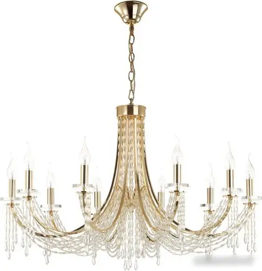 Подвесная люстра Odeon Light Capel 5063/10 выполнена в классическом стиле и украшена золотистым каркасом из металла. Она имеет 10 ламп мощностью 40 Вт каждая, что обеспечивает яркое освещение комнаты. Люстра крепится на планке и имеет длину и ширину по 88 см, а высота — 124,4 см. Вес изделия составляет 6,9 кг, что делает его устойчивым и прочным. В комплекте лампочки не идут, их нужно докупить отдельно. Люстра не поддерживает дистанционное управление и интеграцию с "умным домом", работает с цоколем E14. Благодаря простому дизайну она подойдет для различных помещений с классическим интерьером. Легкая в монтаже и эксплуатации, она создает уютную атмосферу в доме.