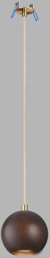 подвесная люстра, плафон коричневый (дерево), каркас бронзовый
