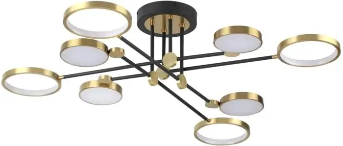 Люстра Odeon Light Denzel 4320/75CL – это современное потолочное освещение, которое отлично подходит для любой комнаты. Она имеет один светильник с мощностью 75 Вт и светодиодной лампой, что обеспечивает яркое и энергоэффективное освещение. Каркас выполнен из металла в сочетании золотистого и черного цветов, а плафоны белого и золотистого оттенков добавляют комнате стильный вид. Люстра шириной 126 см и высотой 25 см легко вписывается в разные пространства. Она не имеет встроенного выключателя или дистанционного управления, но её яркость и цветовую температуру можно регулировать. Возможность регулировки цветовой температуры помогает создавать комфортную атмосферу. Люстра не поворачивается и не оснащена датчиками движения, что делает её простым и надежным источником света. Удобство в использовании и современный дизайн делают эту люстру хорошим выбором для дома или офиса.