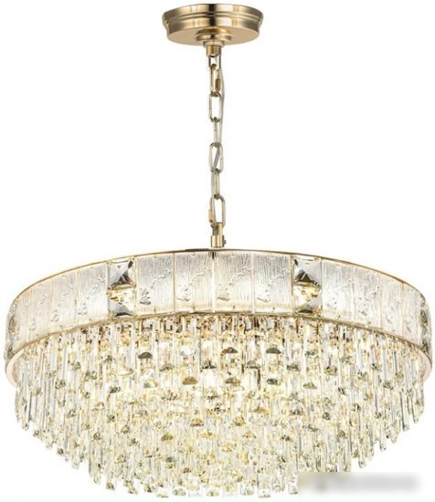 подвесная люстра, плафон прозрачный (стекло/хрусталь), каркас золотистый
