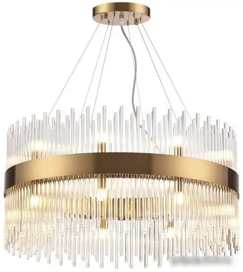 Подвесная люстра Odeon Light Focco создает яркое и современное освещение в вашей комнате. Она оснащена 18 галогенными лампами мощностью 40 Вт каждая, что обеспечивает яркий свет и хорошую освещенность. Люстра имеет прозрачные плафоны, которые красиво вливаются в любой интерьер и позволяют равномерно распространять свет. Каркас выполнен из металла с бронзовой отделкой, что придает изделию стильный и прочный вид. Благодаря регулируемой высоте, вы можете настроить люстру под высоту потолка или свои предпочтения. Устройство крепится на планку и не включает в себя выключатель или пульт дистанционного управления. Люстра не поворачивается и не имеет встроенной светодиодной подсветки или датчика движения. Вес 18,3 кг делает её устойчивой и надежной при монтажe. Эта модель отлично подходит для просторных помещений с высоким потолком.