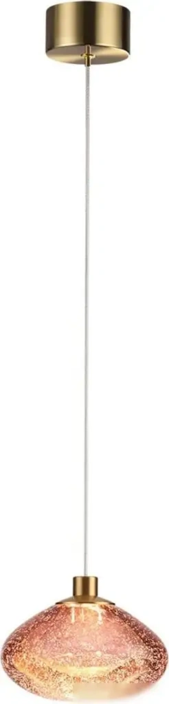 подвесная люстра, плафон розовый (стекло), каркас бронзовый