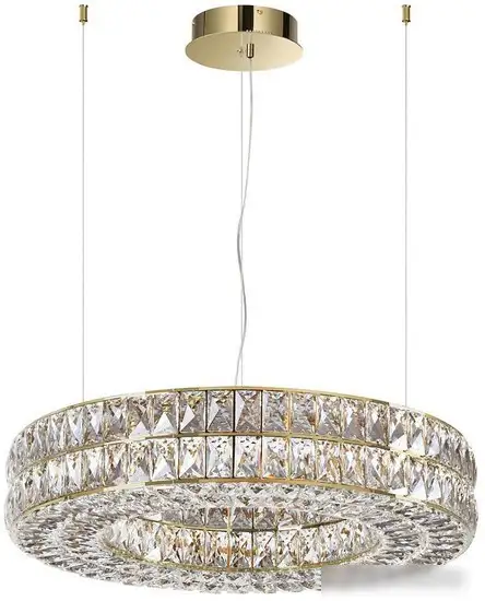 Подвесная люстра Odeon Light Panta 4926/85L создает эффектное освещение в современных интерьерах. Она состоит из большого металлического каркаса золотистого цвета и массивных хрустальных колец, усиливающих эффект великолепия. Люстра подходит для потолочного монтажа и оснащена одной светодиодной лампой мощностью 85 Вт, которая обеспечивает яркий и экономичный свет. Длина и ширина составляют по 80 см, а высота — 120 см, что делает её заметным элементом комнаты. Благодаря использованию хрусталя и металлического материала, она выглядит элегантно и современно. Возможна установка нескольких колец диаметром 600, 800 или 1000 мм, а также их комбинирование для создания уникального дизайна. В комплект входит лампочка, что сразу готово к использованию. Люстра отличается простым монтажом на планку и долговечностью. Она отлично подходит для тех, кто хочет украсить свой дом стильной и функциональной светильником.