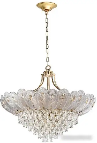 подвесная люстра, плафон прозрачный (стекло), каркас золотистый