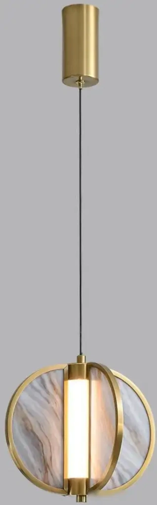 подвесная люстра, плафон серый/рисунок (мрамор), каркас бронзовый